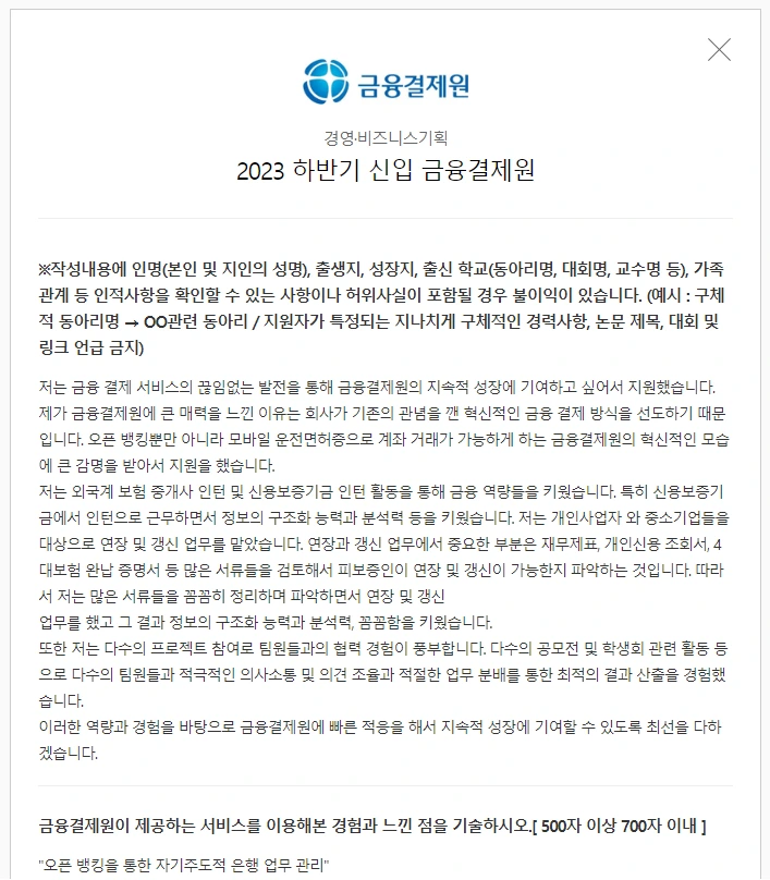 자기소개서를 준비할 때는 실제 합격 사례를 참고하는 것이 큰 도움이 됩니다.
